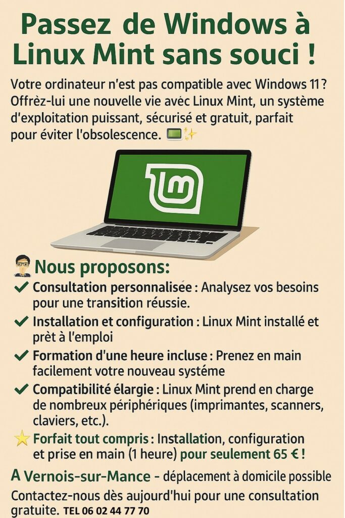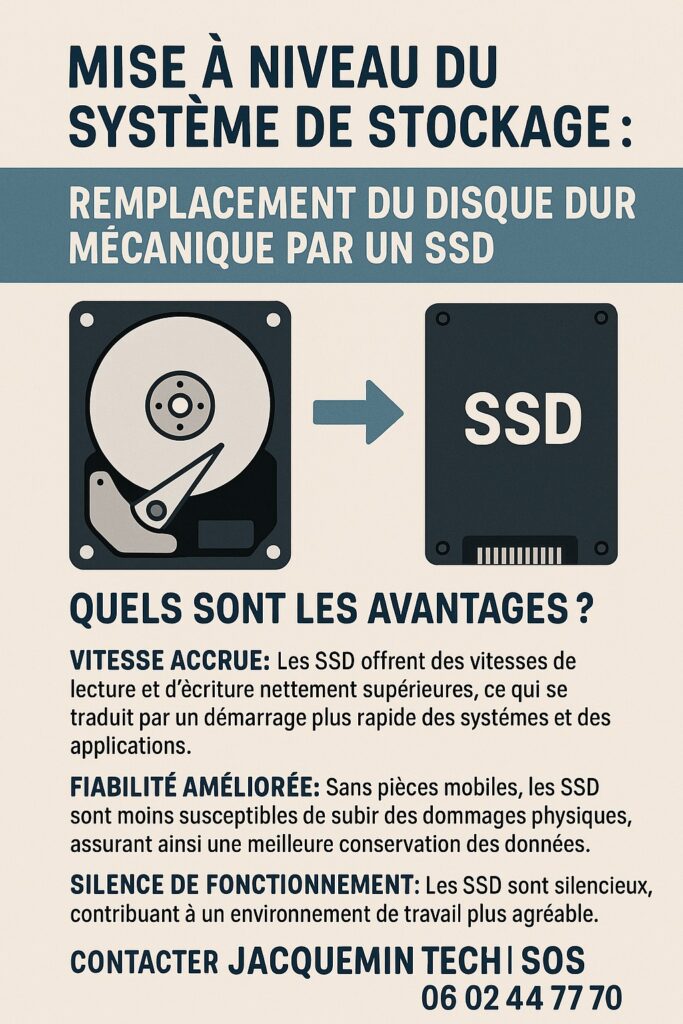 - Migration vers SSD (depuis disque dur mécanique) : 50 €
